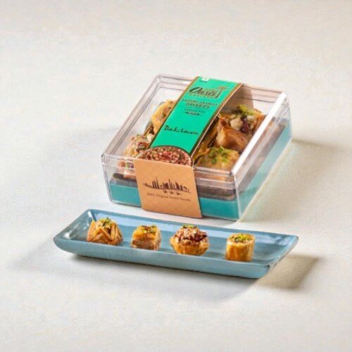 Elevate your gifting experience with the Crystal Elegance Baklava Collection. Nestled in a stunning, solid crystal-look box, each piece of baklava is handcrafted using the finest nuts, pure ghee, and golden layers of phyllo pastry. The box itself is a reusable keepsake, reflecting refinement and grandeur. Whether you’re celebrating a festive occasion, wedding, or simply sharing sweetness, this baklava collection makes a timeless impression.