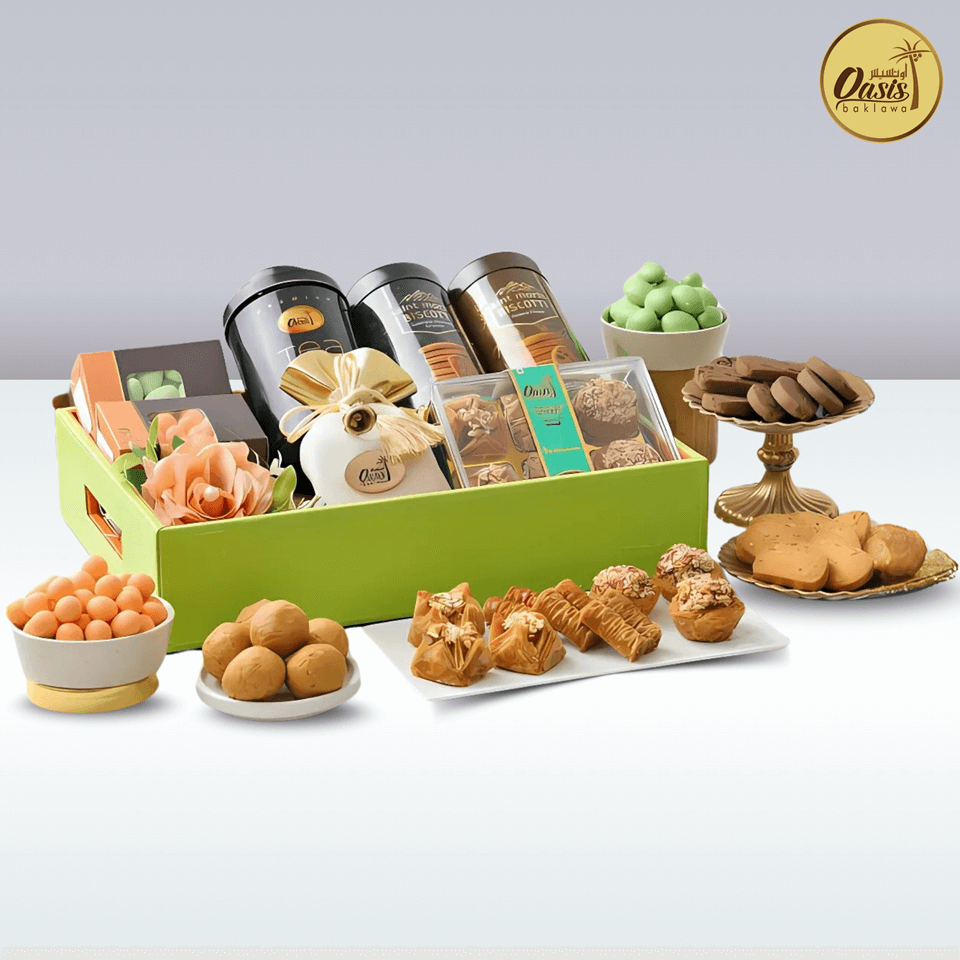 Oasis Bounty: Premium Gourmet Gift Box with Assorted Baklawa & Biscotti