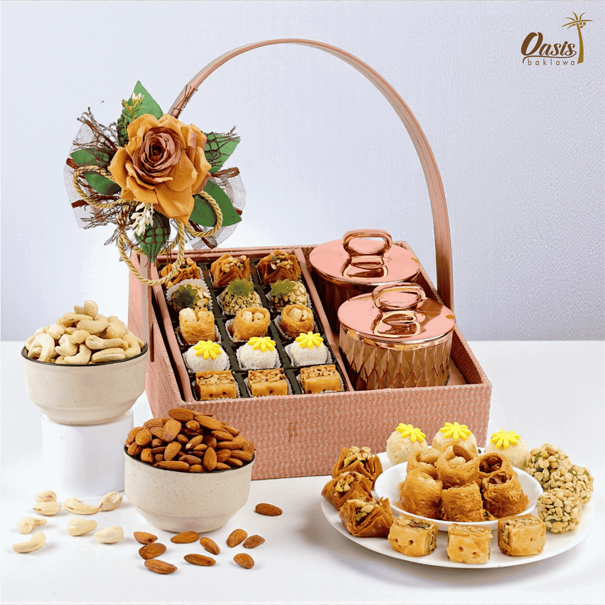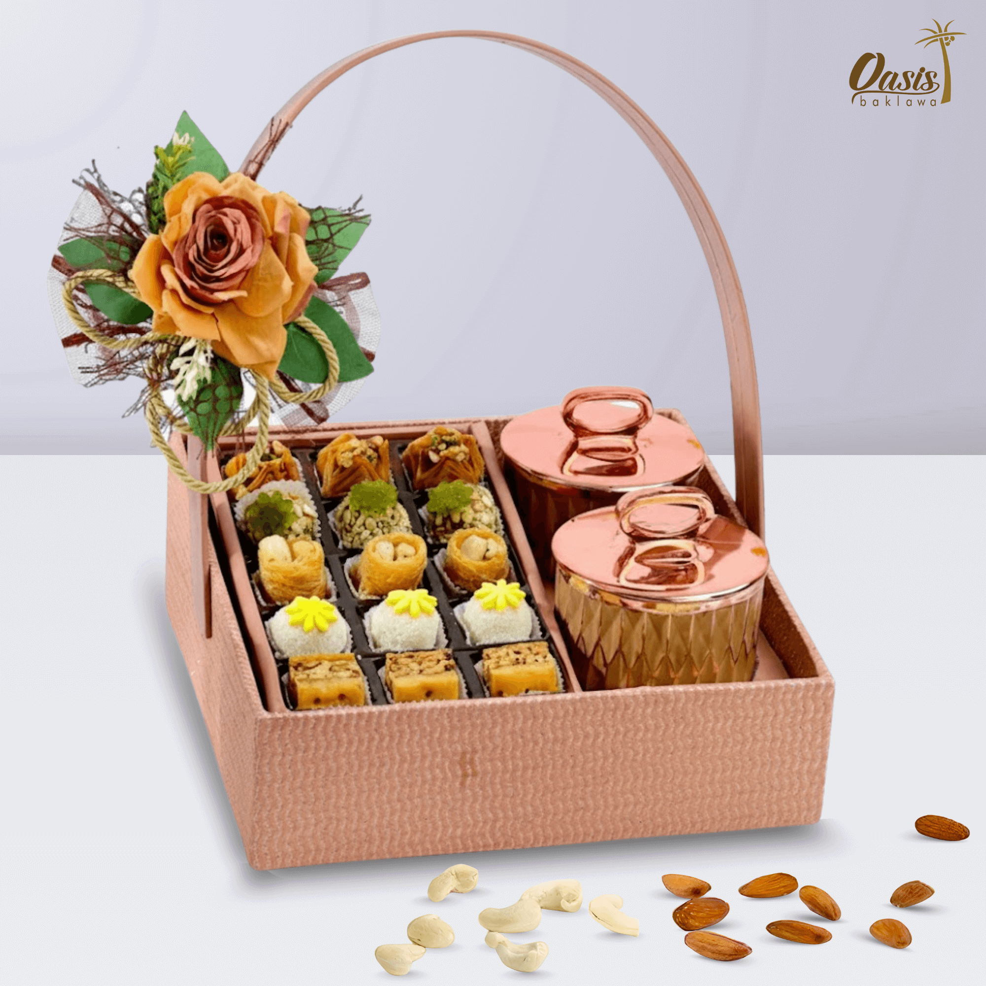 Elanor Luxury Baklawa Basket with Copper Jars | Premium Gift Hamper