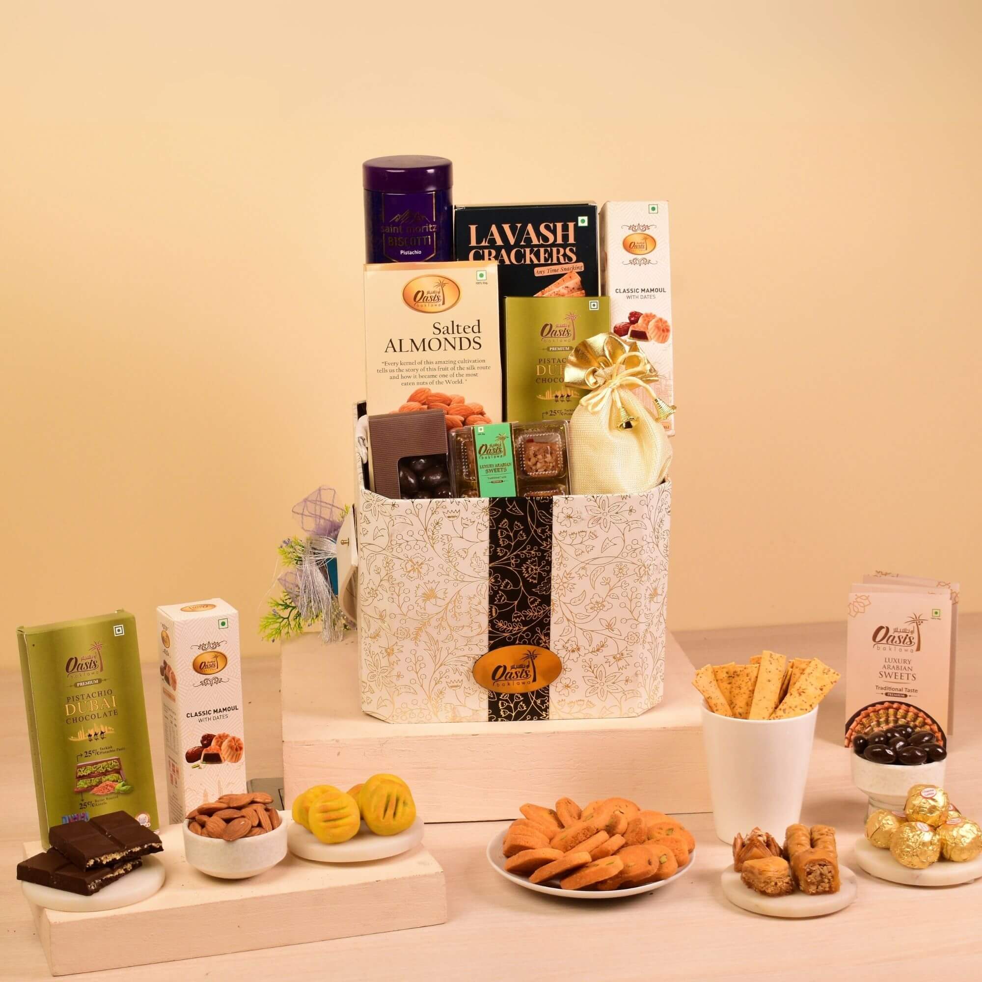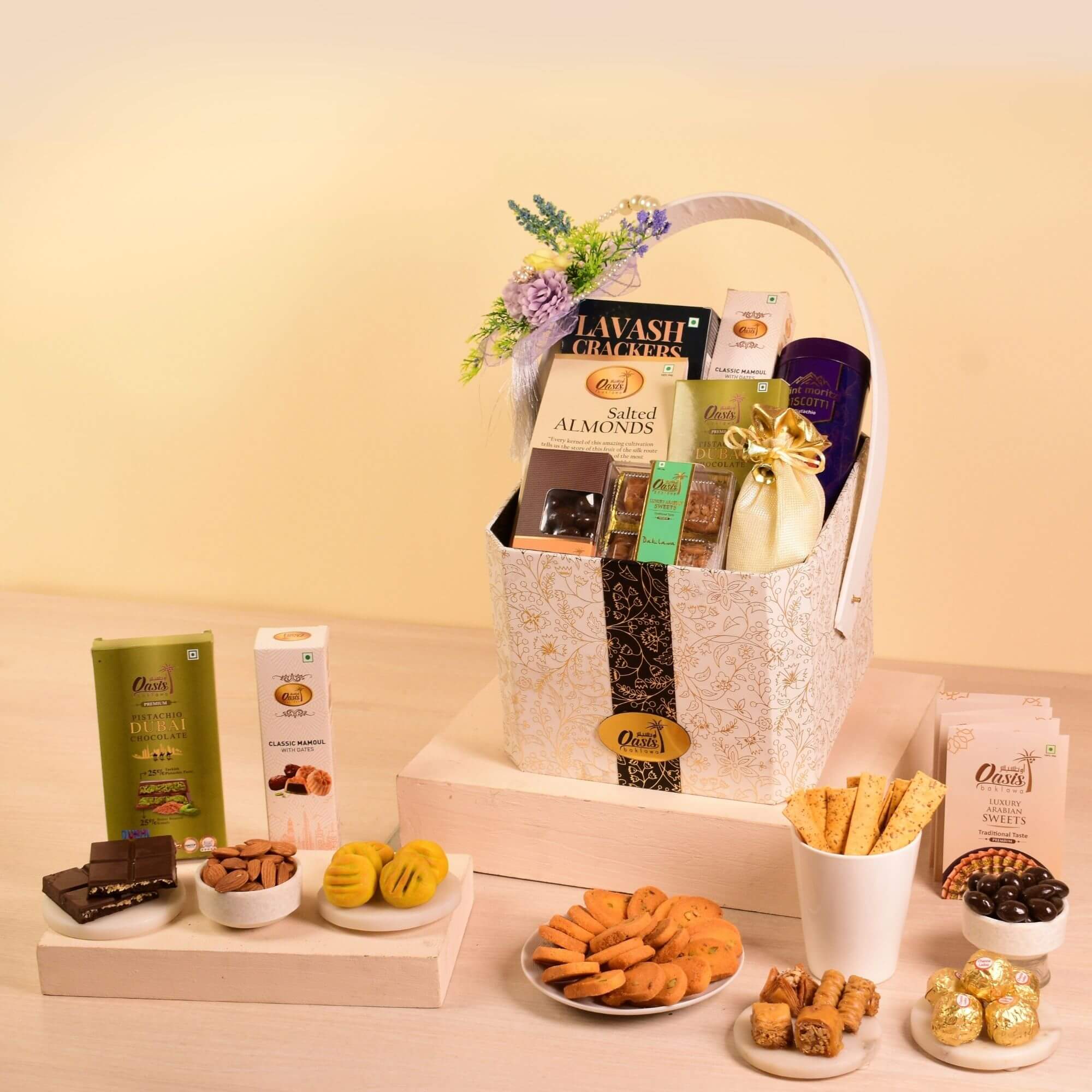 Indulge in a world of refined flavors with the Oasis Global Gourmet Basket — a luxurious curation of Middle Eastern, Indian, and European delicacies. From rich chocolates and traditional sweets to artisanal snacks and dry fruits, this hamper is crafted for those who appreciate premium taste and thoughtful gifting.