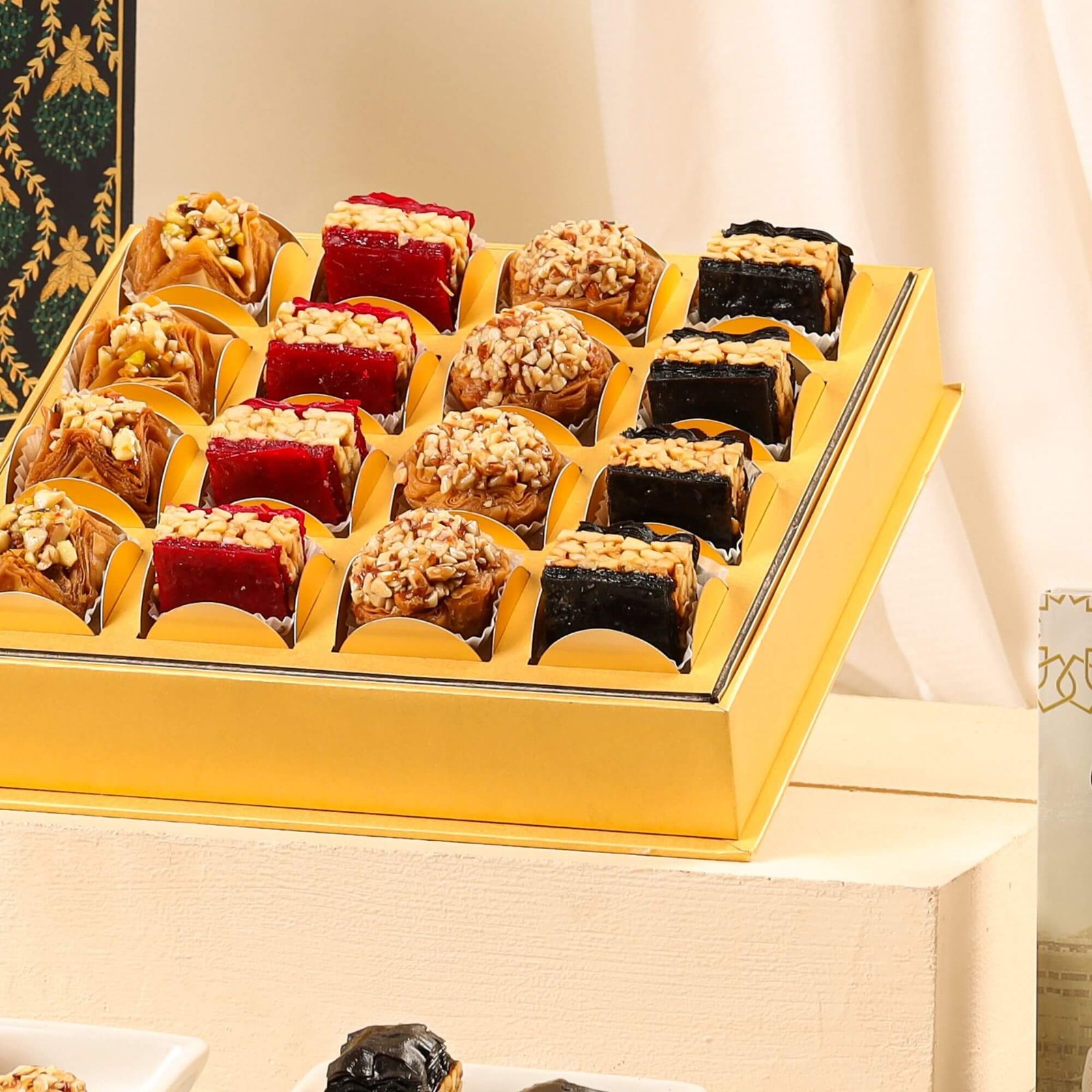 The Indigo 16 Gift Hamper is a beautifully curated box of 16 handpicked premium baklawas, offering a luxurious experience with every bite. A celebration of textures and flavours, this box features a mix of traditional and modern Middle Eastern sweets, perfect for occasions like Diwali, Rakhi, Holi, weddings, and elegant corporate gifting.