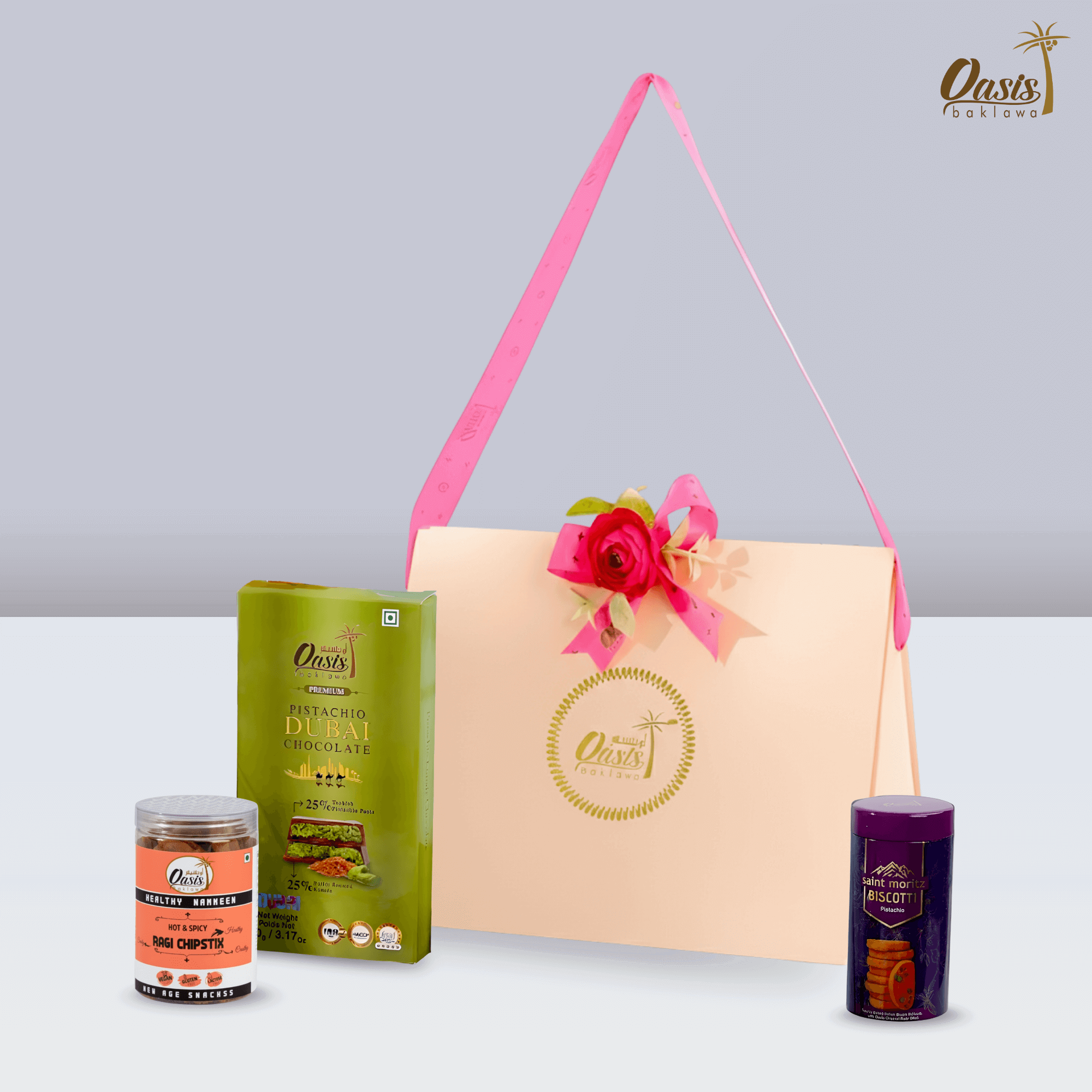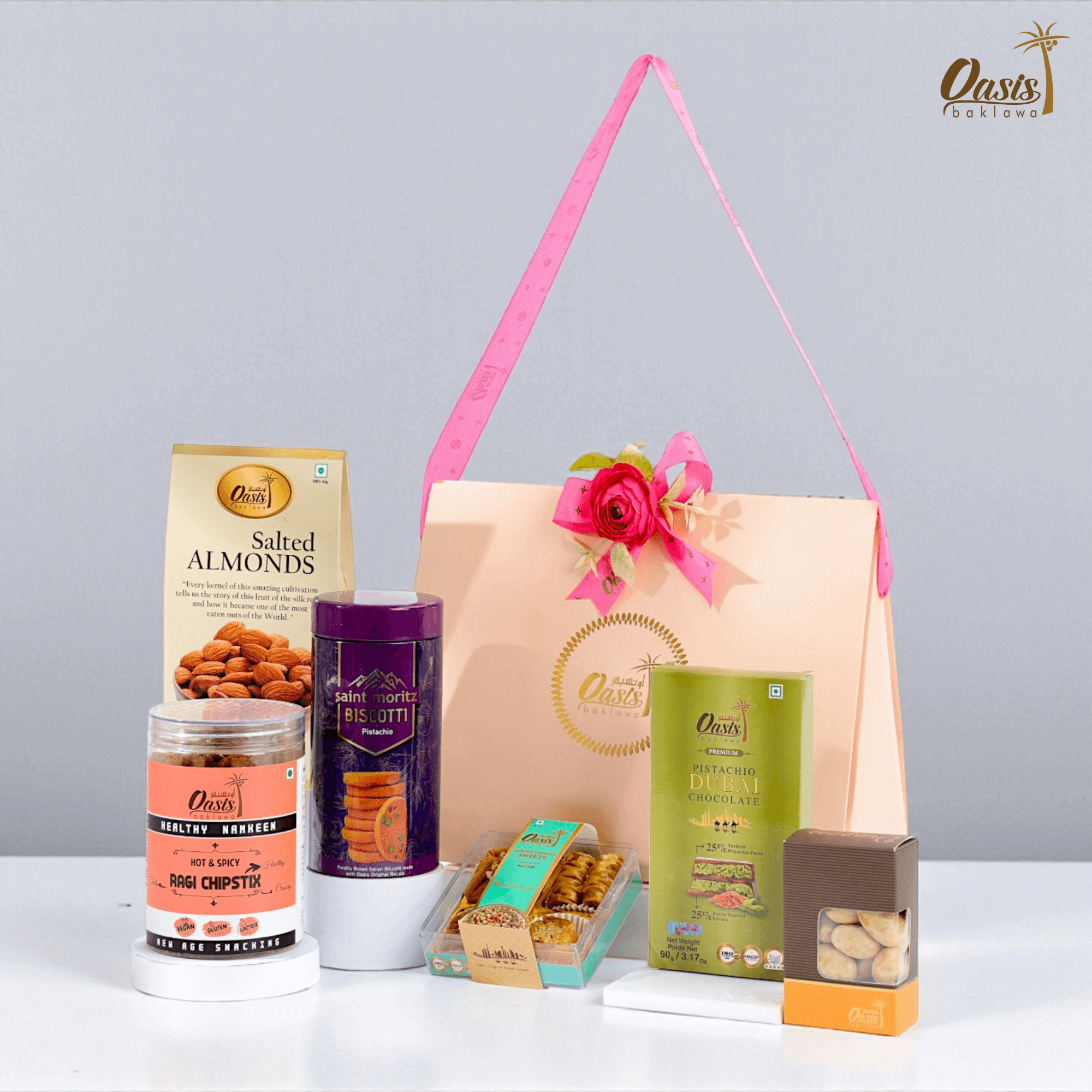 Innosence Dew Premium Snack Hamper | Gourmet Gift Set with Pink Bag