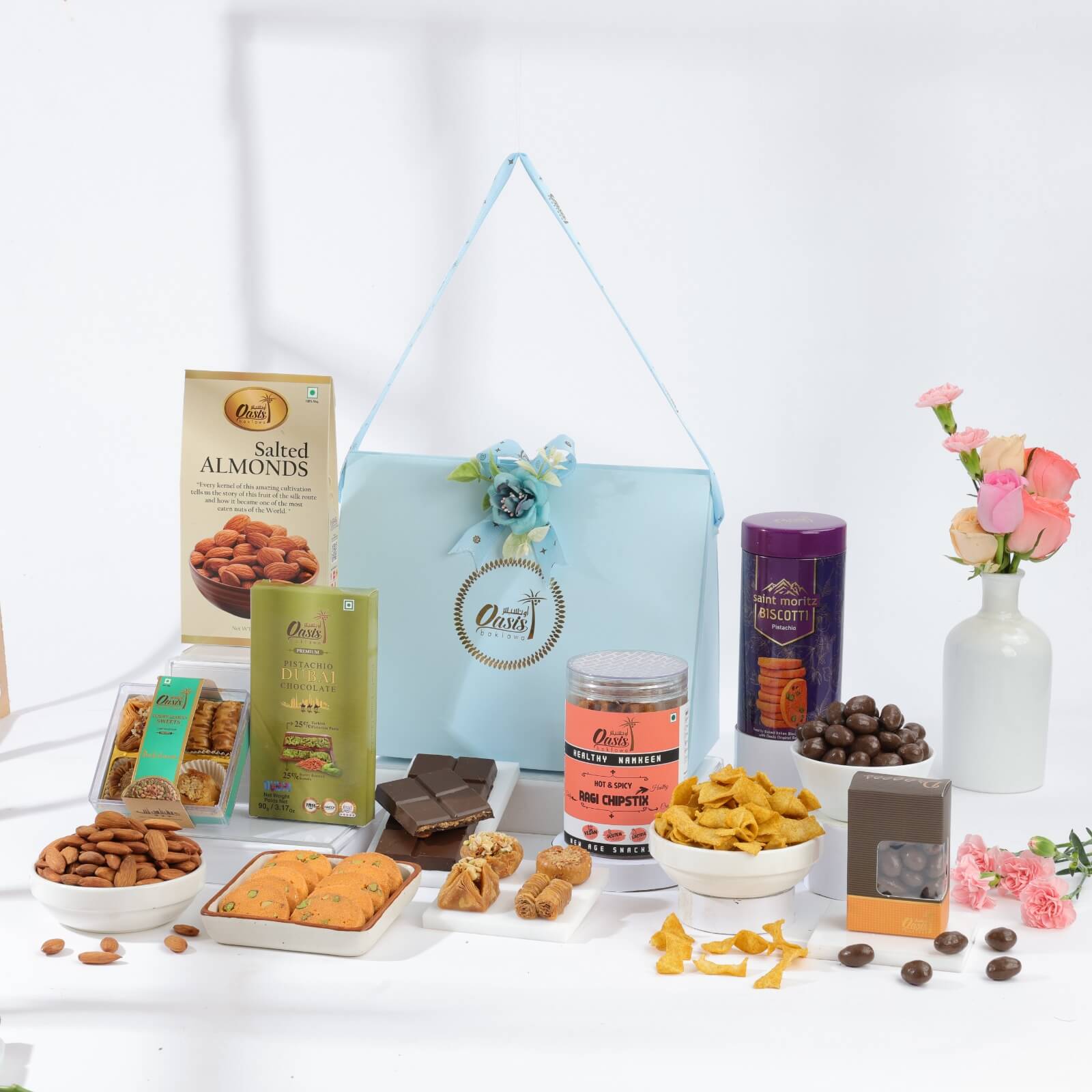 A perfect blend of charm, taste, and elegance — the Innosence Hamper is crafted for those who appreciate thoughtful gifting and rich flavors. From traditional Middle Eastern sweets to modern gourmet indulgences, this hamper is beautifully styled with floral decoration (as per image) to create a truly refined gift experience.