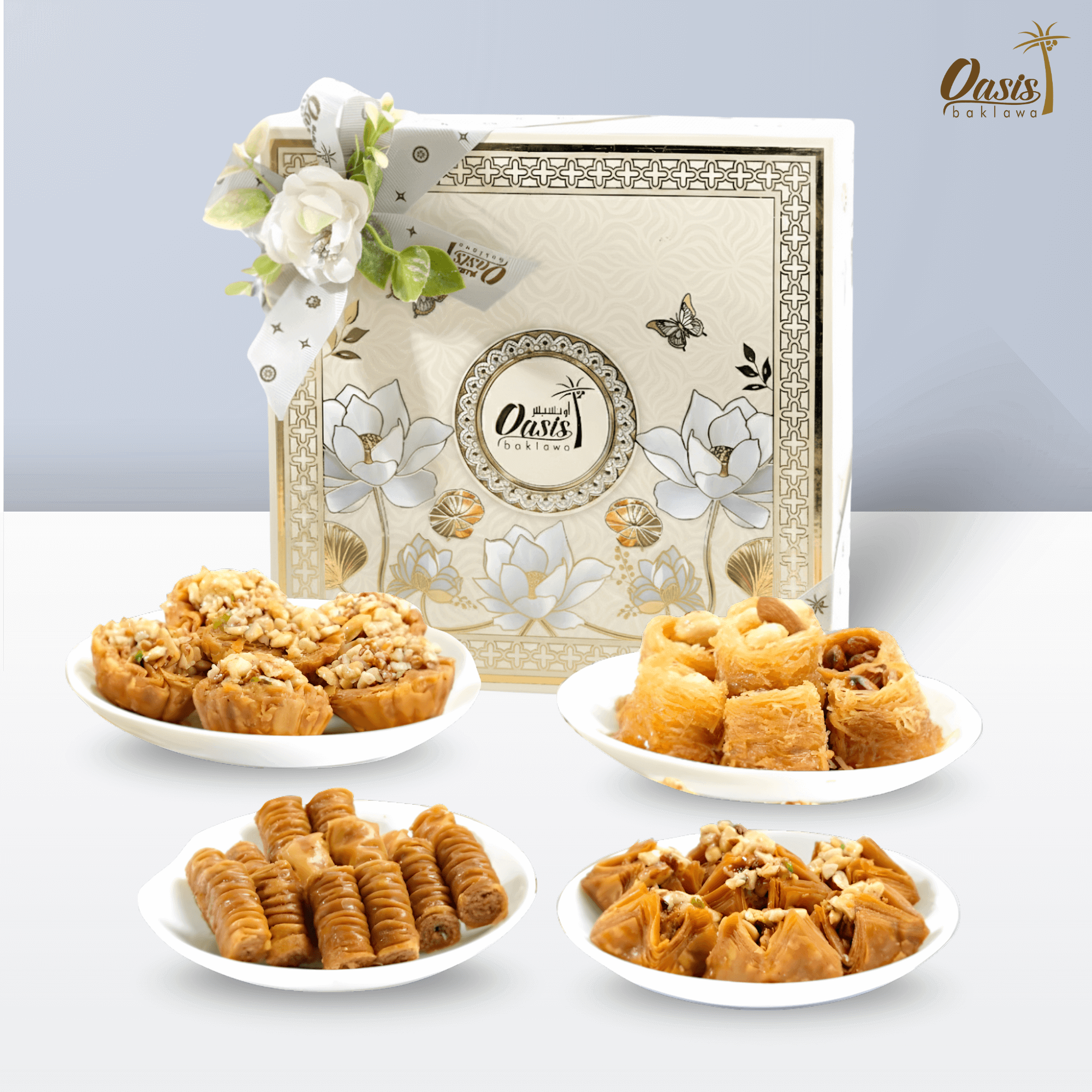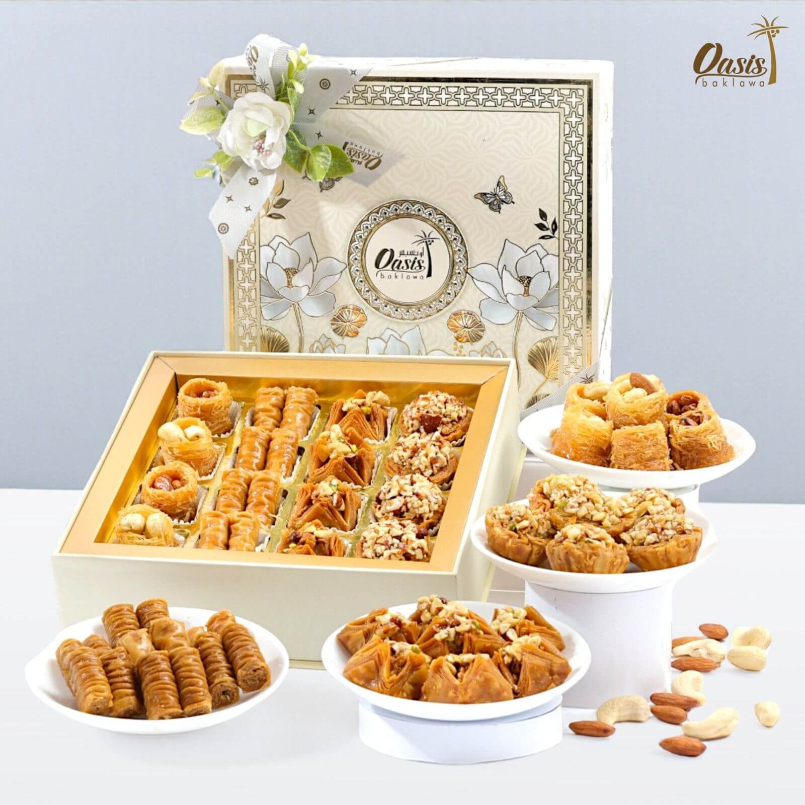 Lotus 16 Premium Baklawa & Dry Fruit Gift Hamper | Elegant White Box Set