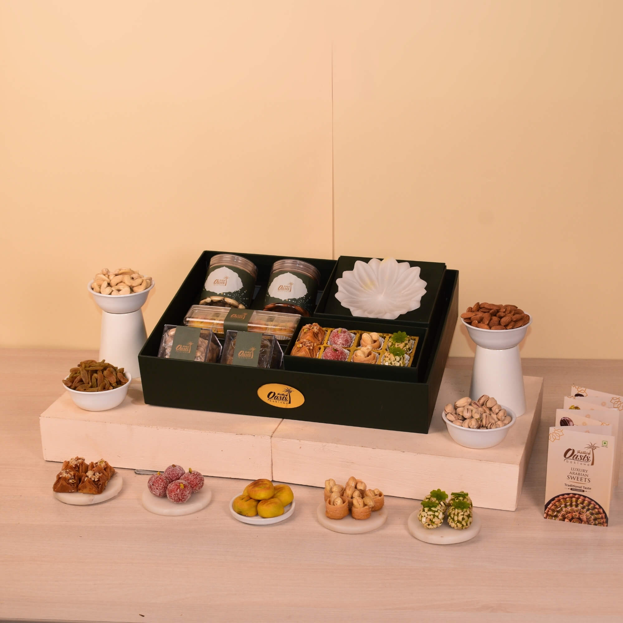 Oasis Festive Glow Diwali Gift Hamper – Dry Fruits, Date Mamoul, Fusion Sweets & Baklawa (7-in-1 Celebration Box