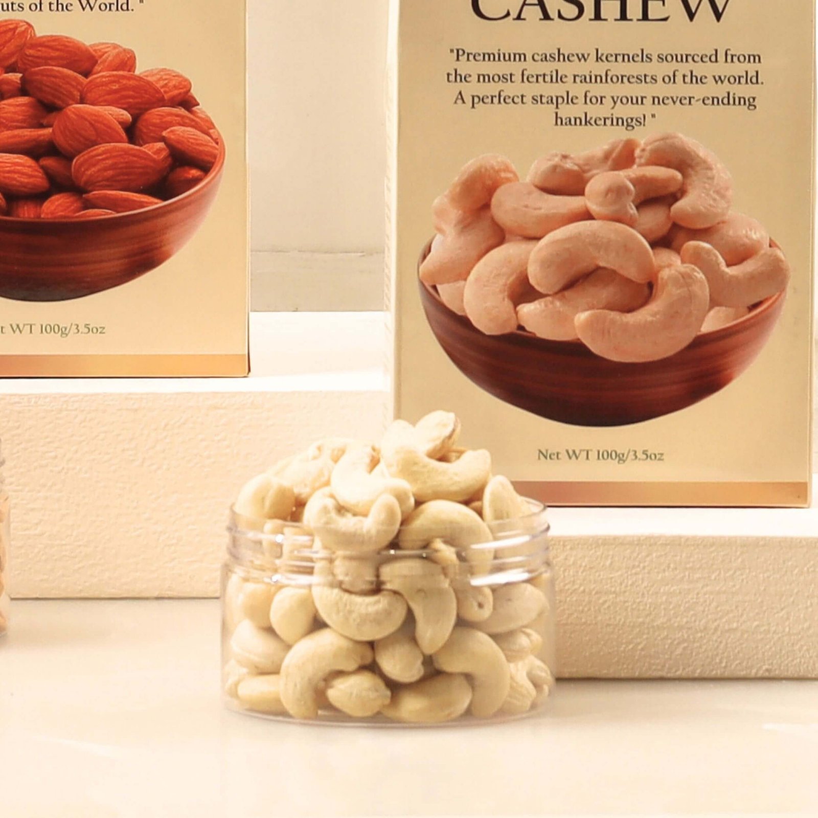 Indulge in the crunch of premium dry fruits with our 3-in-1 Salted Dry Fruit Pack. Featuring 100g each of Salted Almonds, Salted Cashews, and Salted Pistachios, this elegant trio is seasoned to perfection and packed in luxe gift-ready packaging.